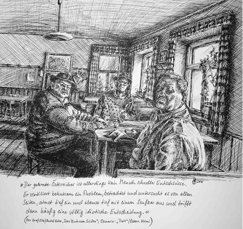 Zeichnungen in Pastell, Bleistift, Buntstift, Kohle, Tusche